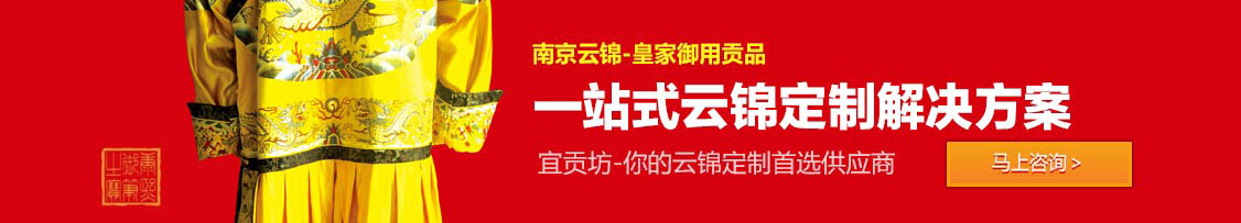 南京宜貢坊云錦文化科技有限公司成立于二OO一年,場地面積10000㎡,致力于做中國知名的云錦,宜貢坊云錦文化科技有限公司座落于江寧開發(fā)區(qū)。做為江蘇云錦文化科技品牌之一,南京宜貢坊擁有雄厚的技術(shù)力量和實(shí)力,現(xiàn)有大型傳統(tǒng)花木樓織機(jī)幾十臺(tái),織造師、研究設(shè)計(jì)人員數(shù)百人。公司擁有直屬北京、深圳、上海辦事處和近千家緊密經(jīng)銷商、合作商;產(chǎn)品在南京中央商場、新百、上海八百伴、上海友誼商場,泰州金鷹等全國多家大型商場均有專柜。